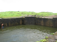 It wasn't difficult climb and within 1hr 30min we were at the base of Lohagad. The place was surrounded by eateries offering hot chai and vadapav, which was always welcome in this rains. It had started pouring now and fort above was covered completely in clouds. Another 30 odd minutes of climb and we were at one of the main gates of the fort. The fort is really in good shape and standing firm even after so many years. We explored the fort as we moved up and as reached the top of the fort, the view of neighbouring Maval region and Pavana river following through it was just beautiful.